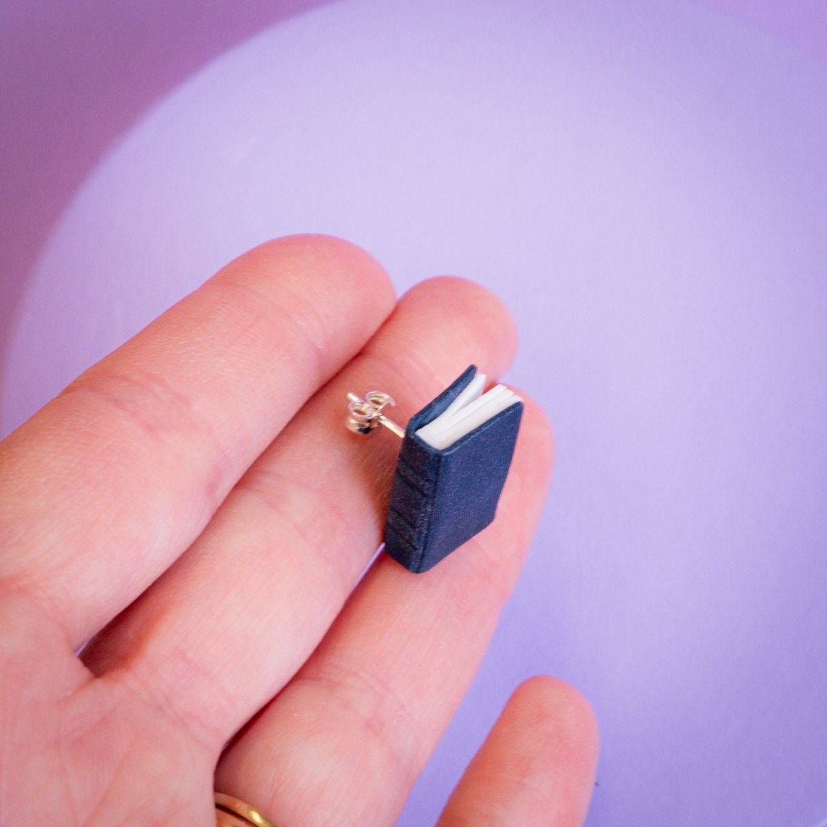 Snygga och enkla örhängen i form av en klassisk bok. Det går till och med att bläddra i boken!