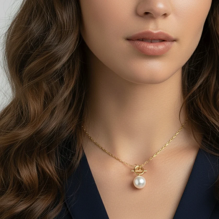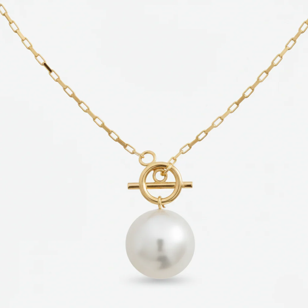 BOLD PEARL NECKLACE – a strikingly beautiful necklace featuring a large lustrous pearl, a timeless classic that radiates pure elegance. Designed with a delicate chain and an exclusive T-bar claps for a sophisticated finish. Delivered in our signature BYBORN jewelry box.