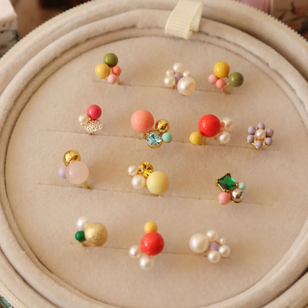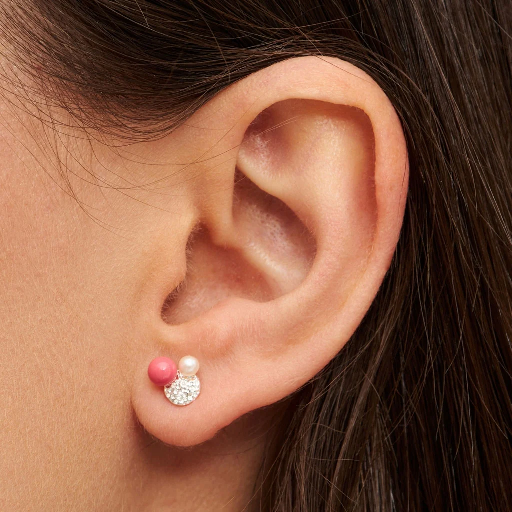 Bouquet Plate kombinerar en vacker slagen yta med en korallfärgad emaljpärla och en diskret och liten sötvattenspärla. Styla det söta örhänget med ett par tjocka creoler för en voluminös look.