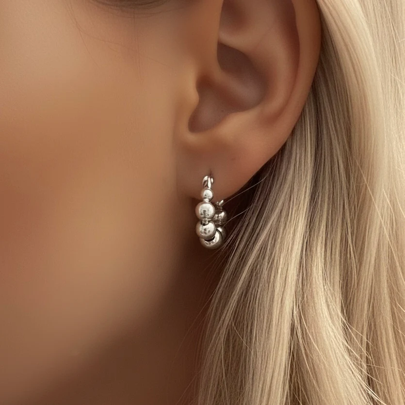 BUBBLE HOOPS EARRINGS – Stylish hoops featuring a unique aesthetic touch. These earrings are designed with small, beautiful spheres that gracefully surround the classic hoop. BUBBLE HOOPS EARRINGS effortlessly elevate your outfit for any occasion. Delivered in our elegant BYBORN jewellery box.