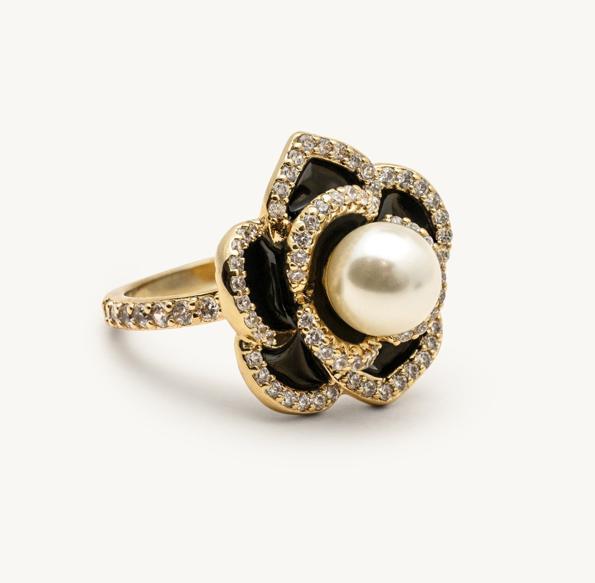 Coco rose ring – Jet / ivory pearl