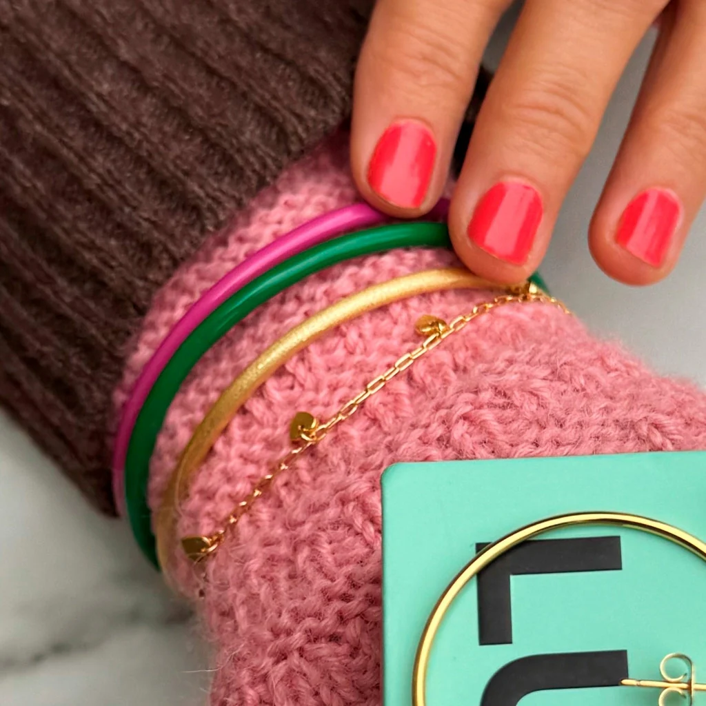 Color Bangle är en storasyster till våra mycket populära Color Rings. De är handdoppade och finns i en rad av olika färger samt i silver och guld.