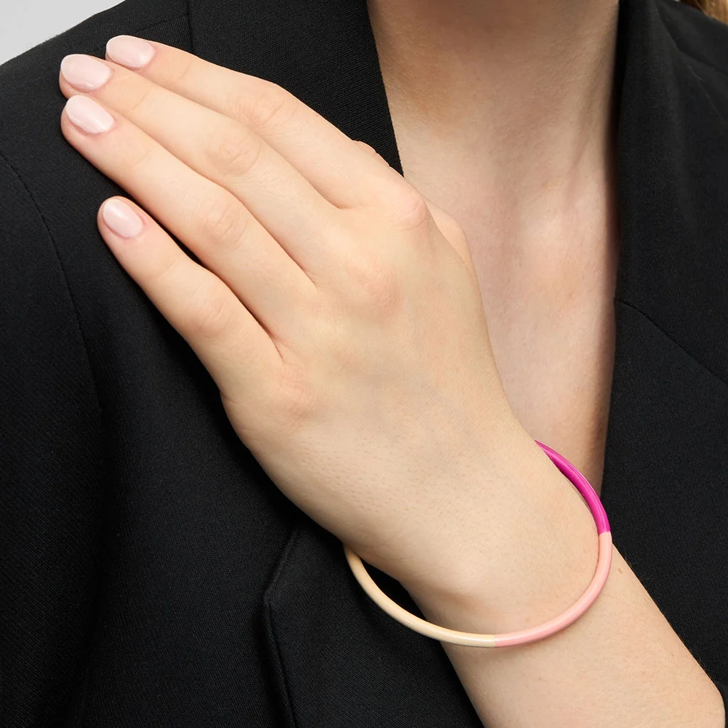 Color Bangle Quatro är ett minimalistiskt armband med handmålad emalj i fyra noggrant utvalda färger. De fina emaljdetaljerna målas för hand och små variationer gör varje armband unikt.