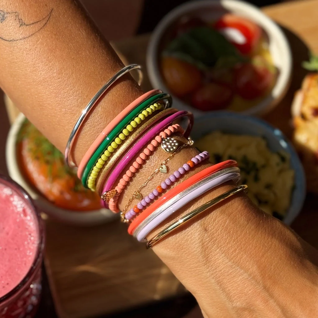 Color Bangle är en storasyster till våra mycket populära Color Rings. De är handdoppade och finns i en rad av olika färger samt i silver och guld.
