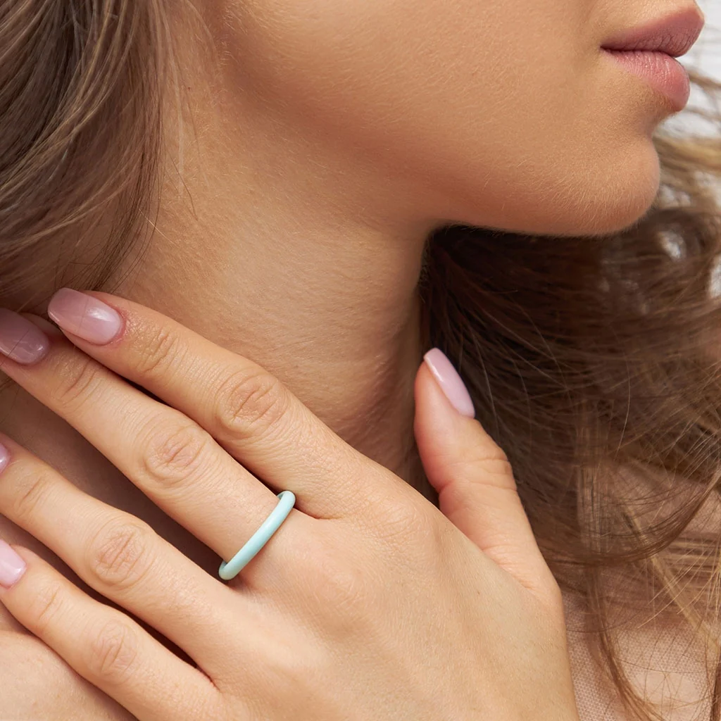 Våra enkla emaljringar kan snabbt sätta färg på din klädsel – året runt. Ringarna kan bäras individuellt eller så kan du välja dina favoritfärger från vårt sortiment och stapla dem på varandra. De har en exklusiv glansig yta som matchar dina guld- och silverringar.