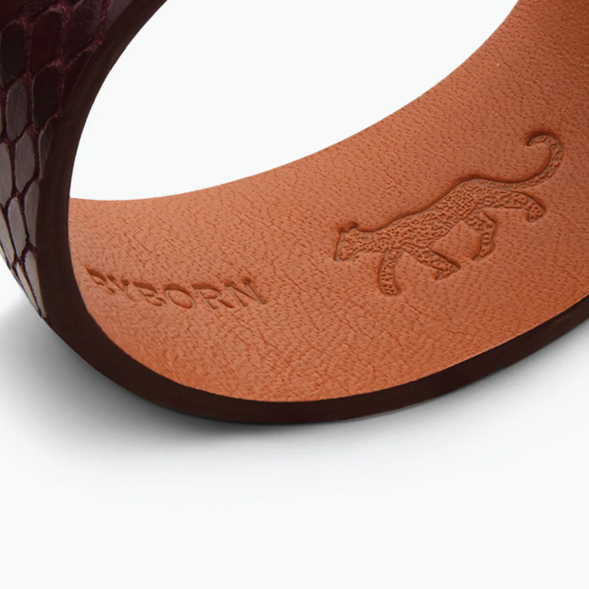 FARRIER is a beautifully handcrafted bracelet in embossed Italian calfskin accentuated with the BYBORN signature B-shape. The delicate clasp adds the finishing touch to the design. The jewelry is delivered in a luxurious BYBORN box.