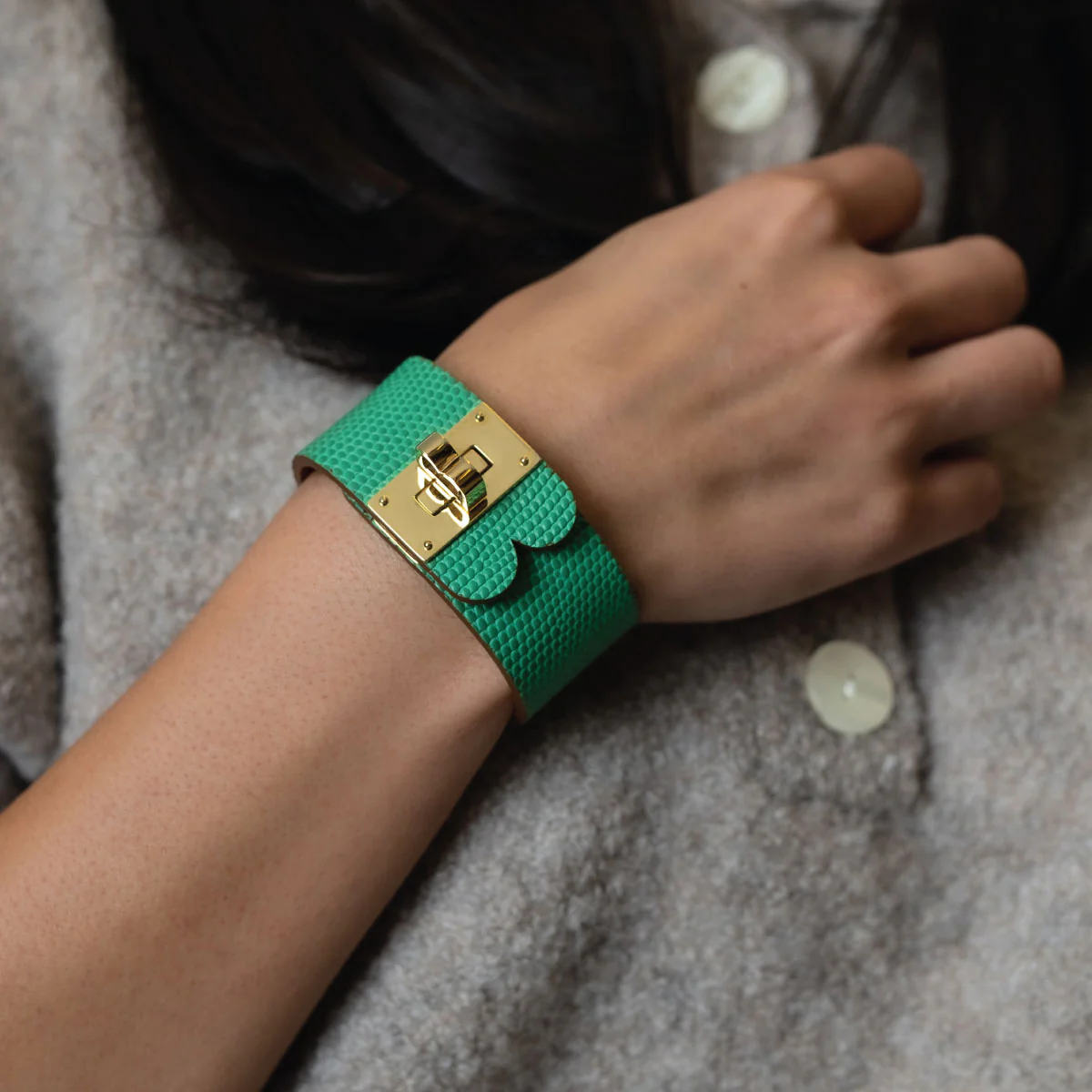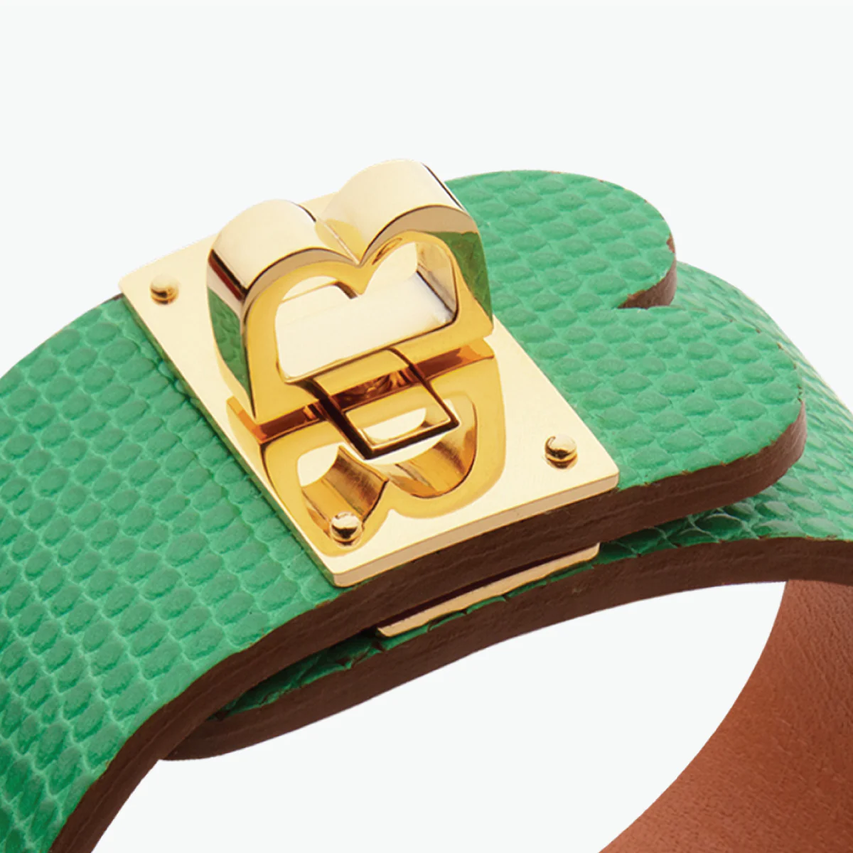 Material: Farrier is a two layer Italian calfskin bracelet, with a metal clasp in gold