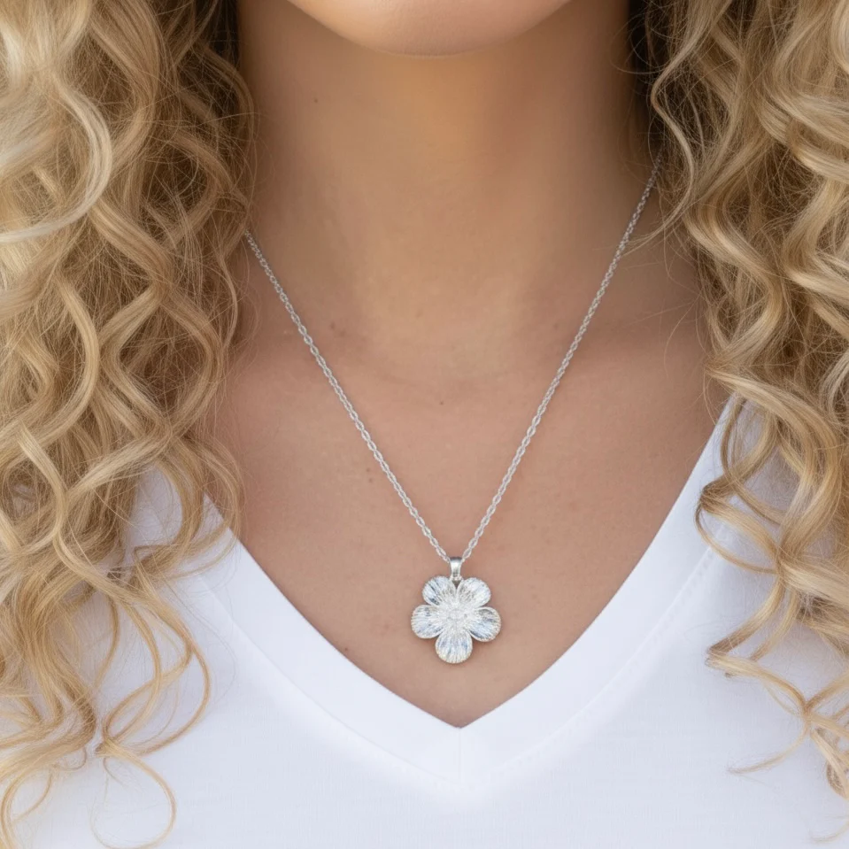 FLOWER NECKLACE – This lovely necklace features a crafted floral design that captures the delicate elegance of a blooming flower. A perfect statement yet feminine necklace for everyday wear or special occasions. Designed with a delicate chain and an adjustable length for a perfect fit. Delivered in our signature BYBORN jewelry box.