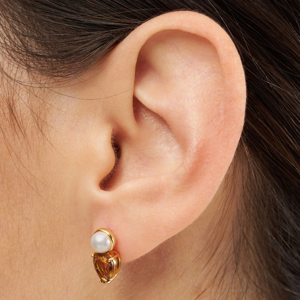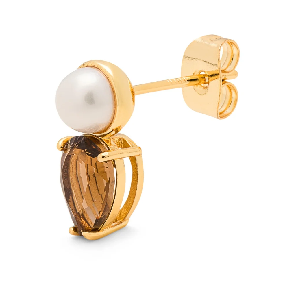 Material: 18K guldpläterad mässing, 50% recirkulerat material, e-coating, kristall, sötvattenspärla.