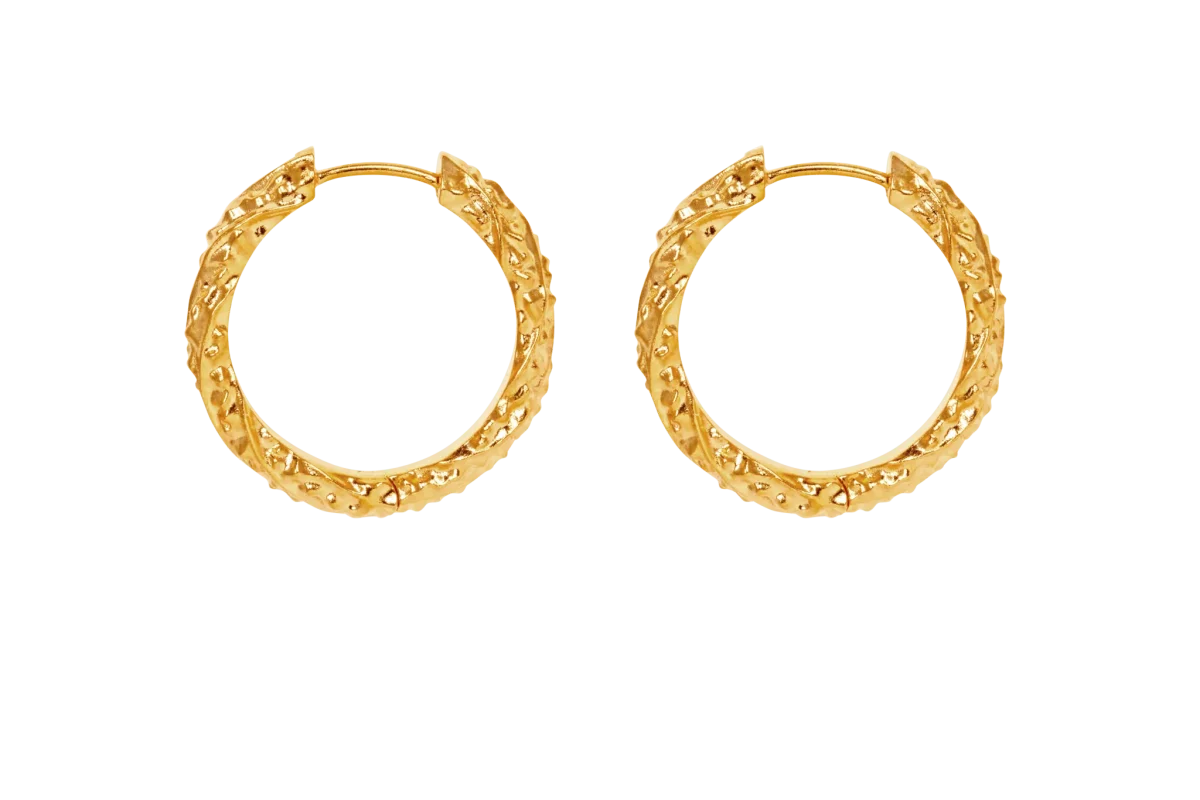 En chunky design som är inspirerad av den råa naturen.• Smycket är 2,5 cm i diameter.• Smycket är tillverkat av 100% återvunnet 22 karats guldpläterat 925 sterlingsilver. • Alla våra smycken är stämplade med 925 IX inuti, vår professionella namnstämpel, registrerad av den danska ädelmetallkontrollen.