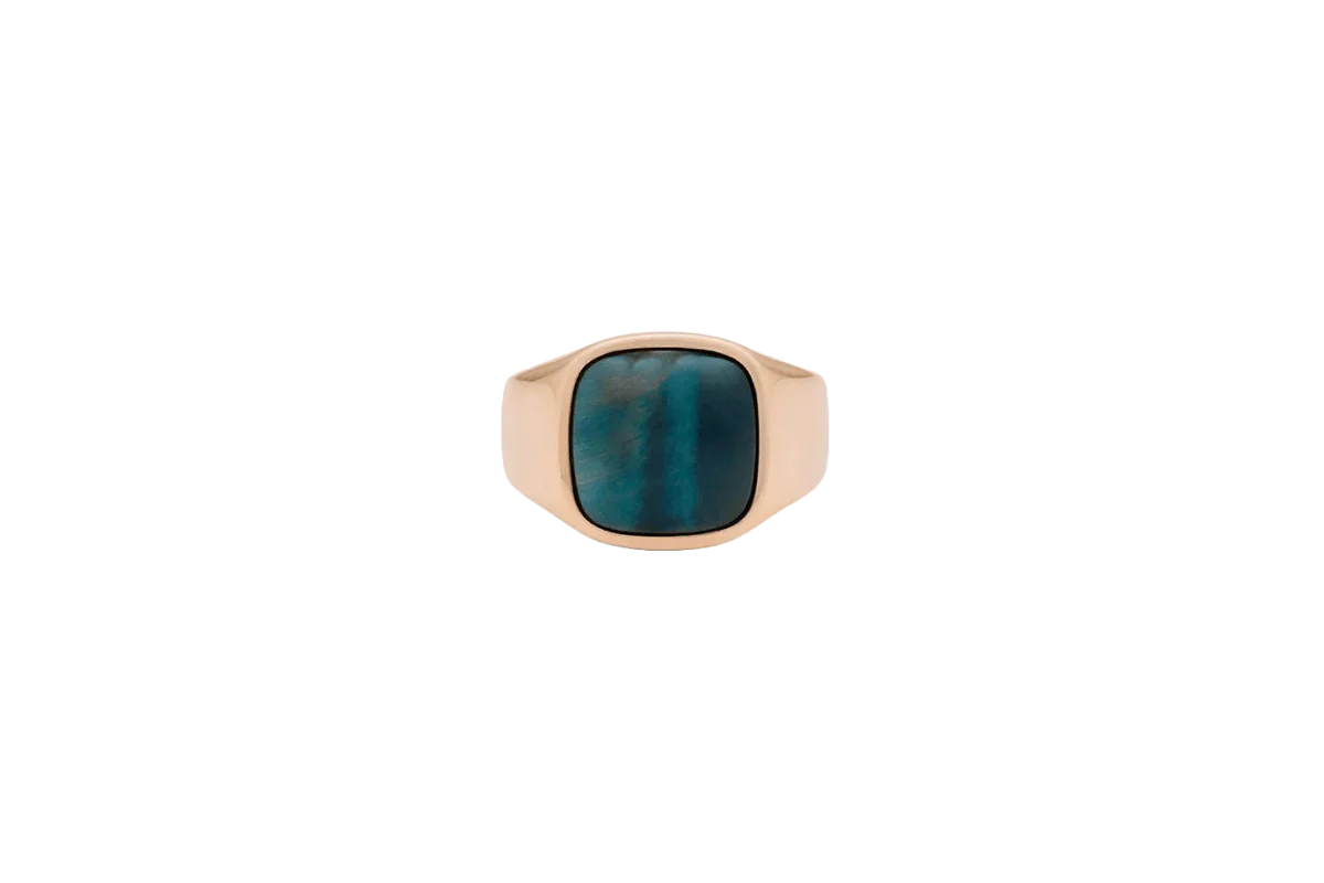 IX Cushion Signet Ring Hawks Eye Gold 14K