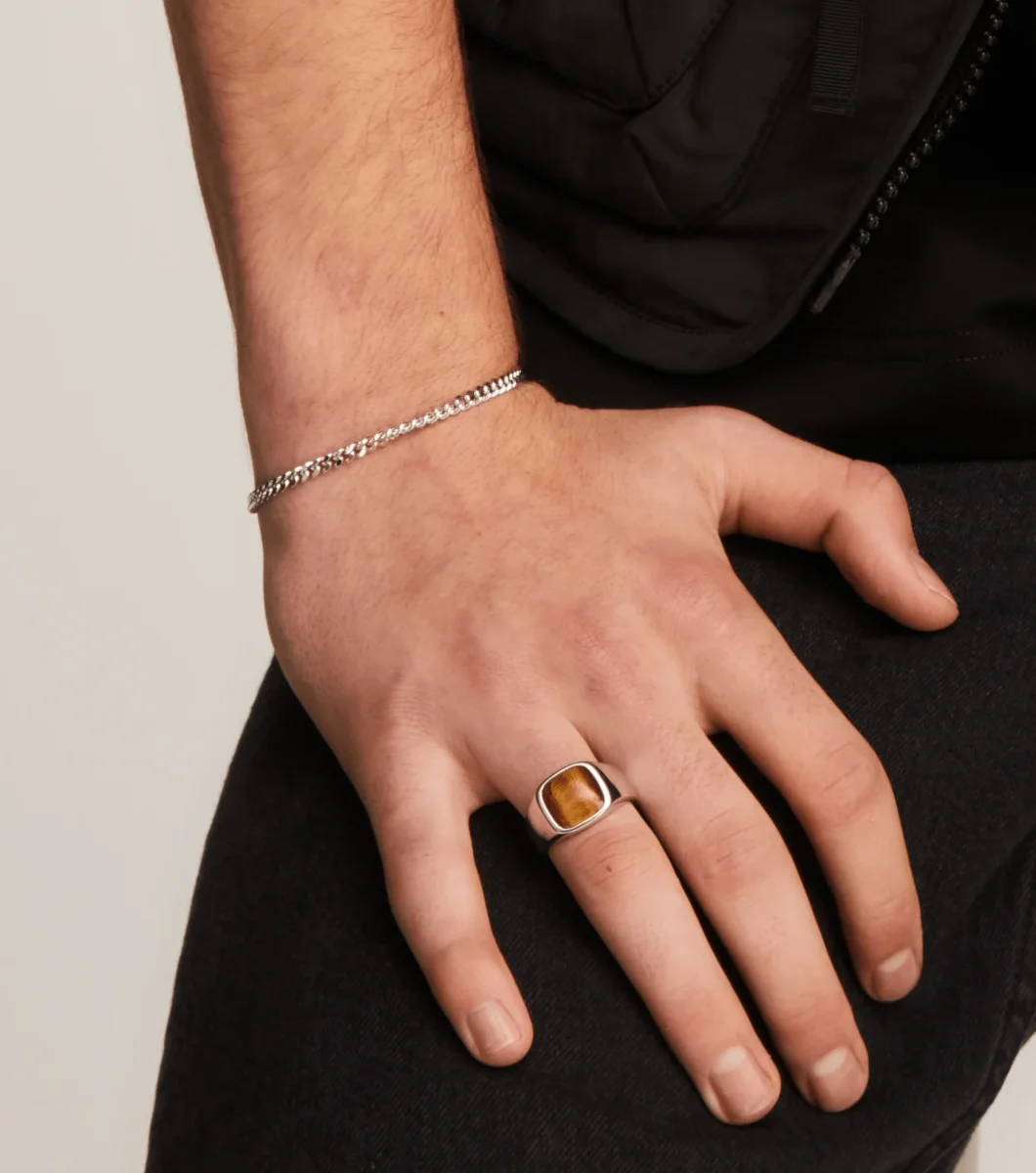 Unisex signetring med mjuka kanter och en Tiger Eye natursten.