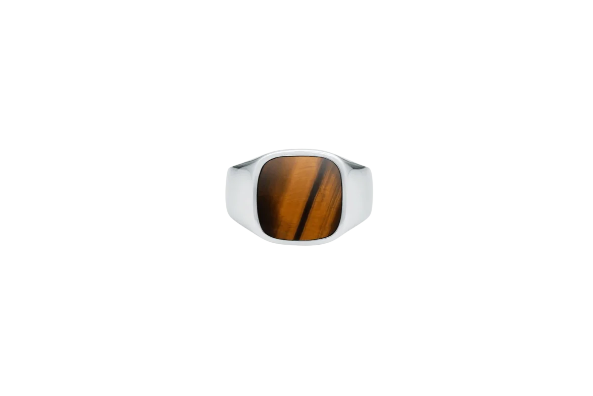 IX Cushion Signet Ring Tiger Eye Silver