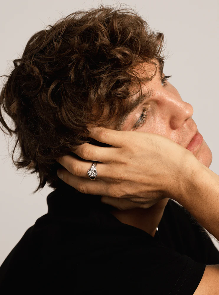 Klassisk minisignetring med rustik yta inspirerad av den råa naturen och prydd med en zirkonia sten.• Ringens toppplatta mäter 11 x 8 mm.• Smycket är tillverkat av 100% återvunnet 925-sterlingsilver. • Alla våra smycken är stämplade med 925 IX på insidan, det är vår professionella namnstämpel, registrerad av den danska ädelmetallkontrollen.