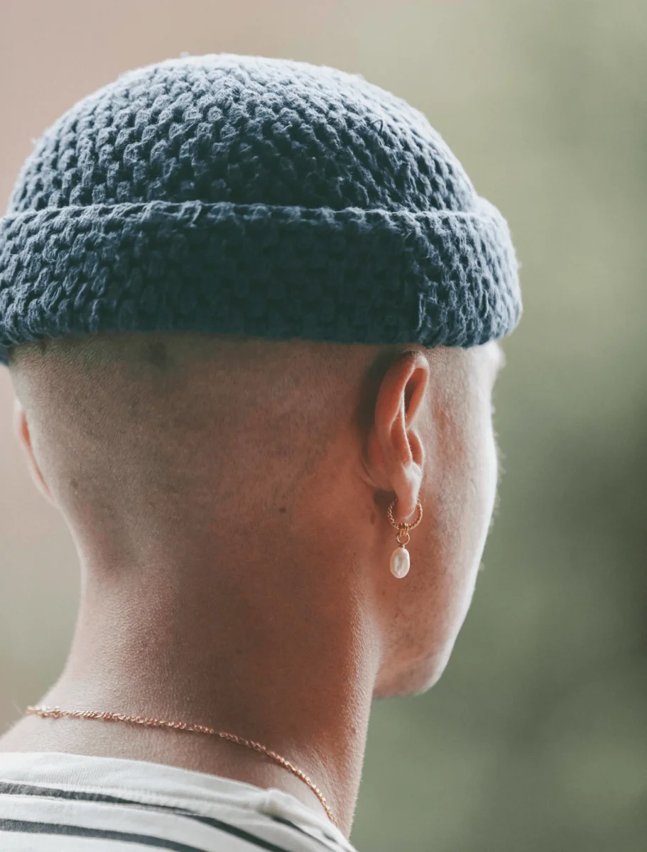 Designen på detta örhänge skapar en bro mellan det råa och det klassiska. Varje pärla är unik, precis som den som bär örhänget