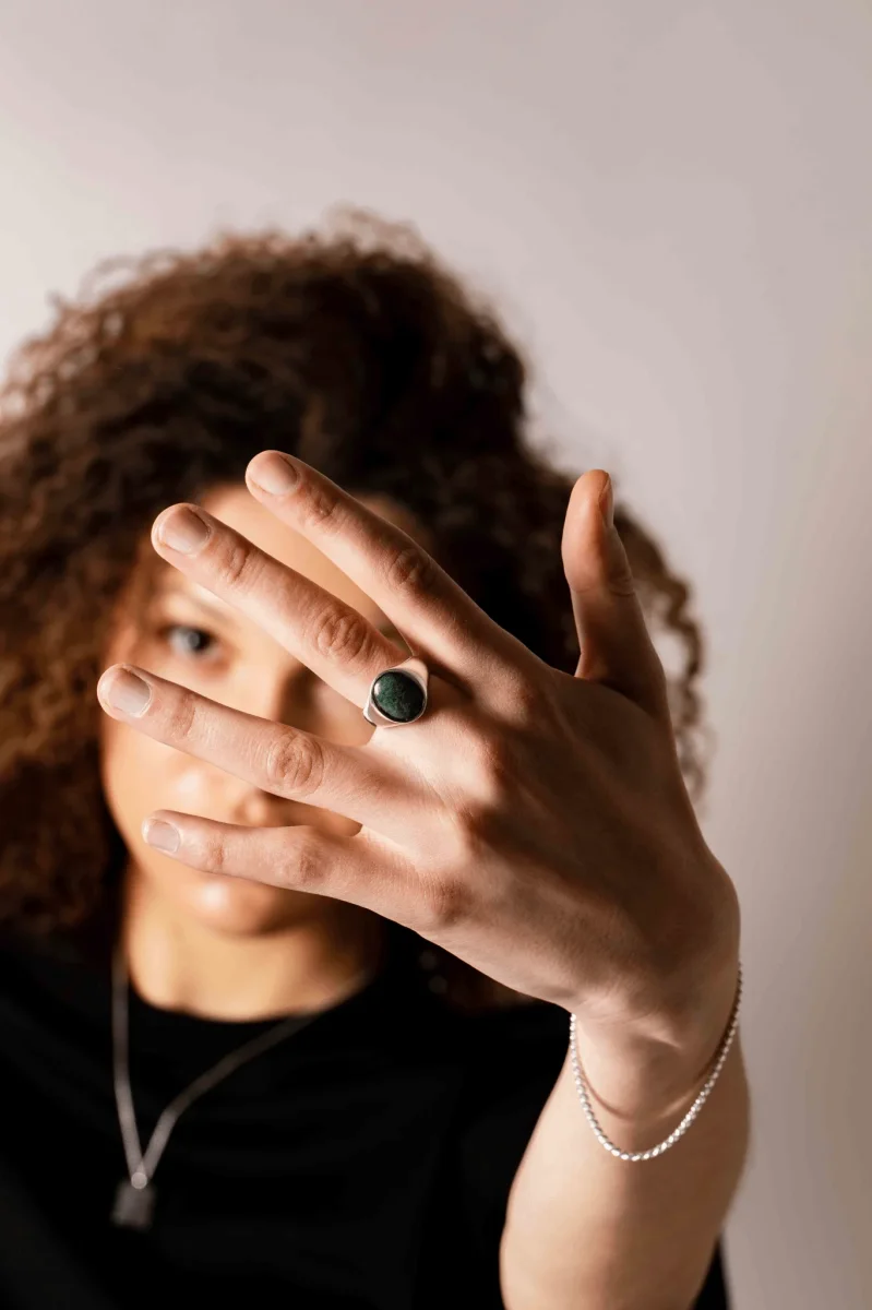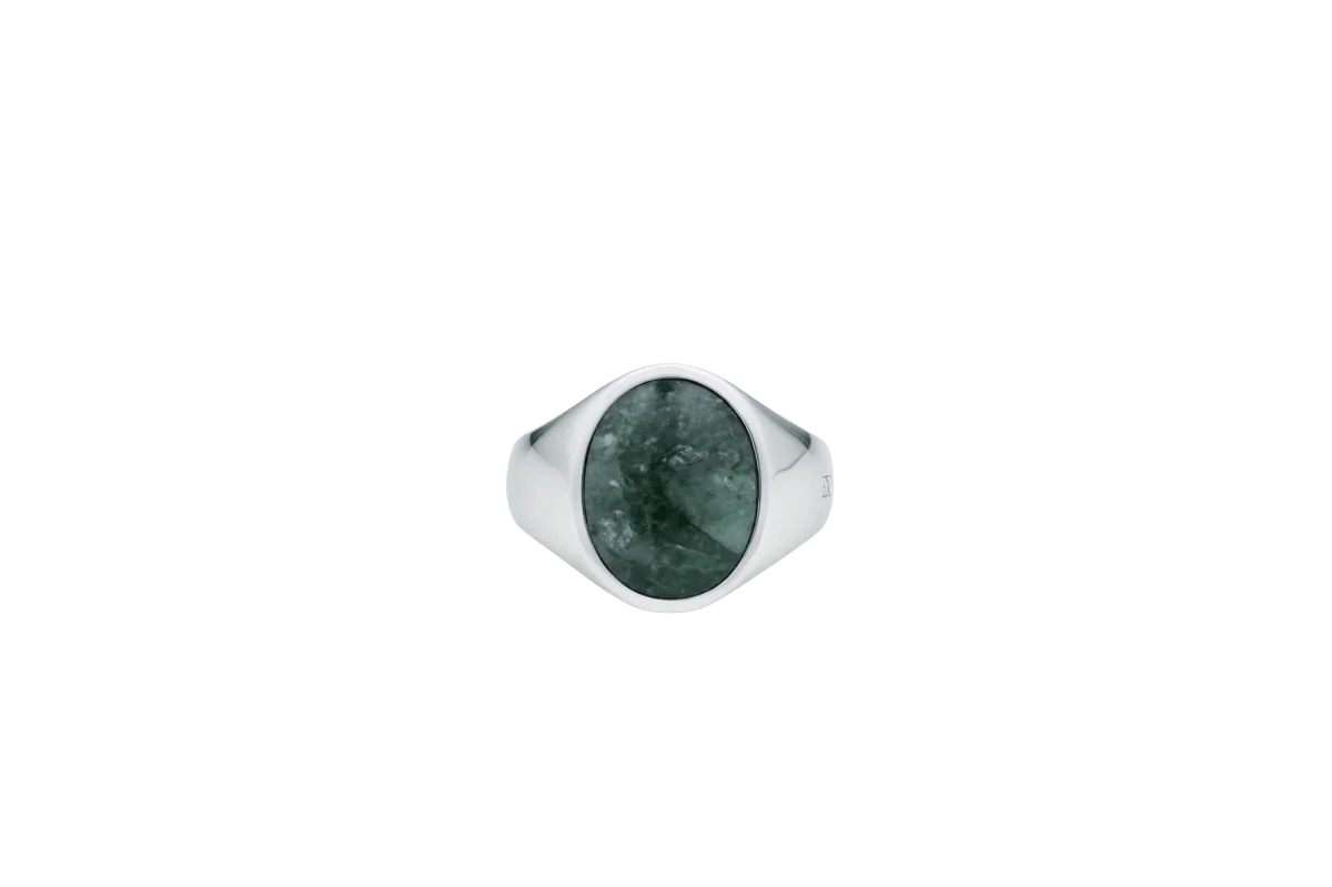 Unisex signet ring med mjuka kanter och Green Marble naturstone.• Smycket är tillverkat av 100% återvunnet 925-sterlingsilver. • Alla våra smycken är stämplade med 925 IX på insidan, det är vår professionella namnstämpel, registrerad av den danska ädelmetallkontrollen.