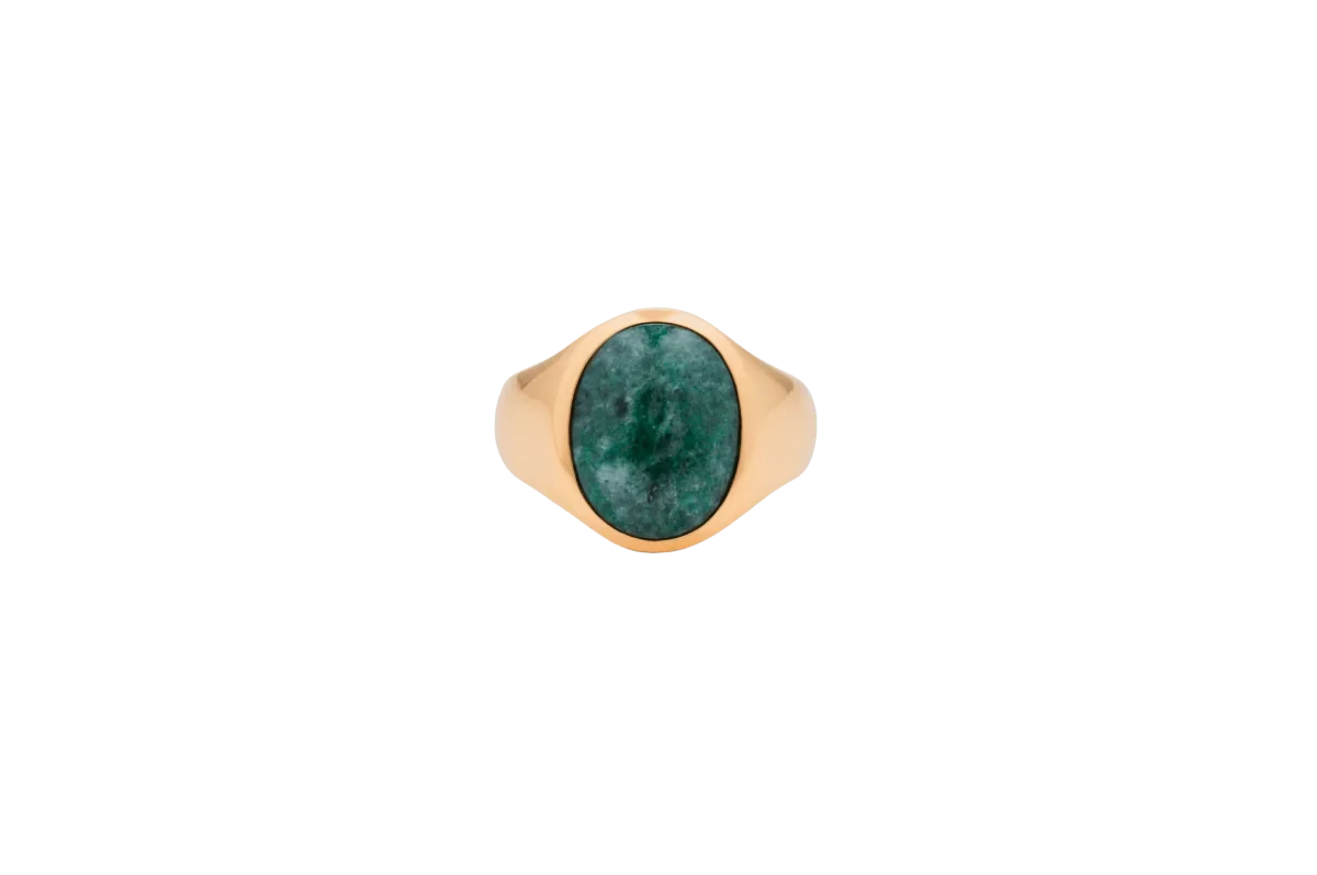 IX Oval Signet Ring Green Marble