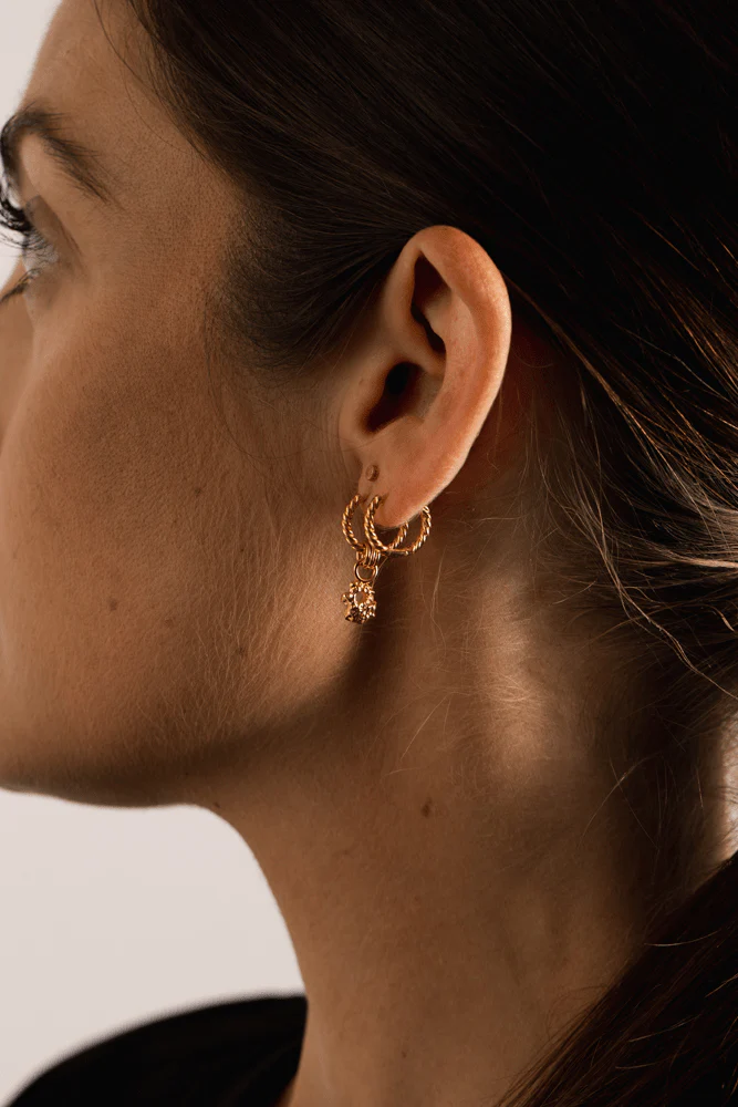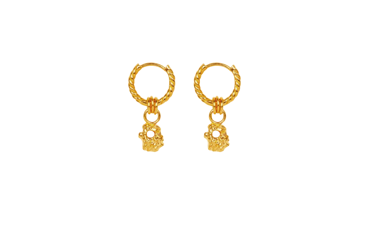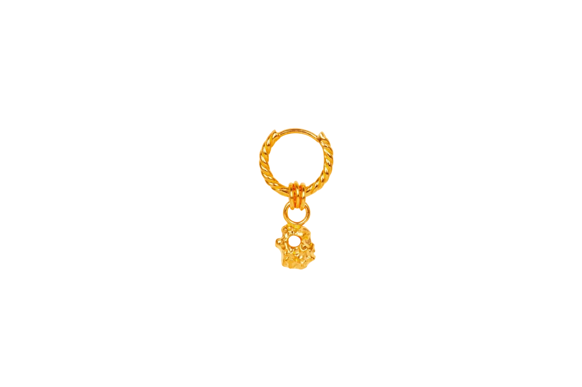 Vackra och råa örhängen med organisk form inspirerade av ihåliga stenar.• Smycket är 2,5 cm långt.• Smycket är tillverkat av 100% återvunnet 22 karats guldpläterat 925 sterlingsilver. • Alla våra smycken är stämplade med 925 IX inuti, vår professionella namnstämpel, registrerad av den danska ädelmetallkontrollen.