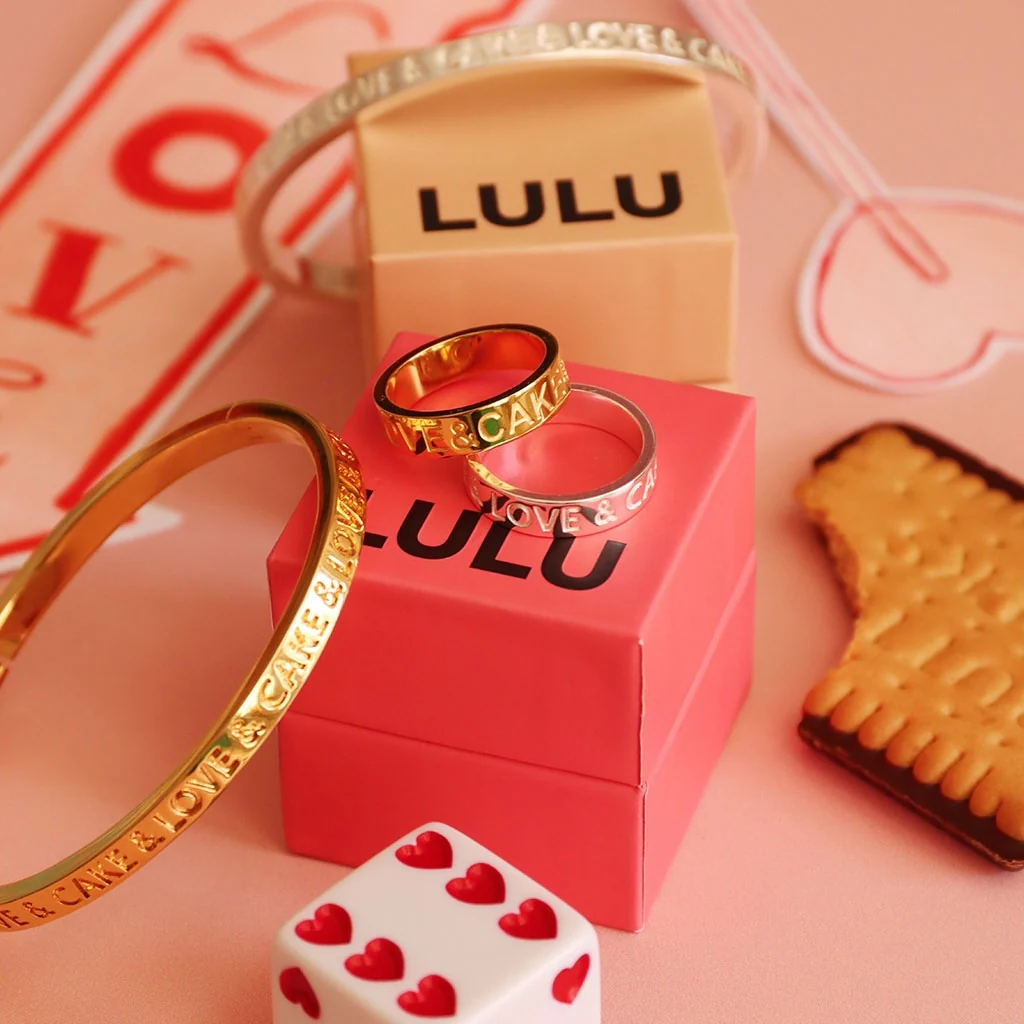 Ett chunky armband med texten LOVE & CAKE – buren med en glimt i ögat. Det voluminösa, glamourösa uttrycket gör armbandet till ett statement i sig och en perfekt kontrast i din styling.