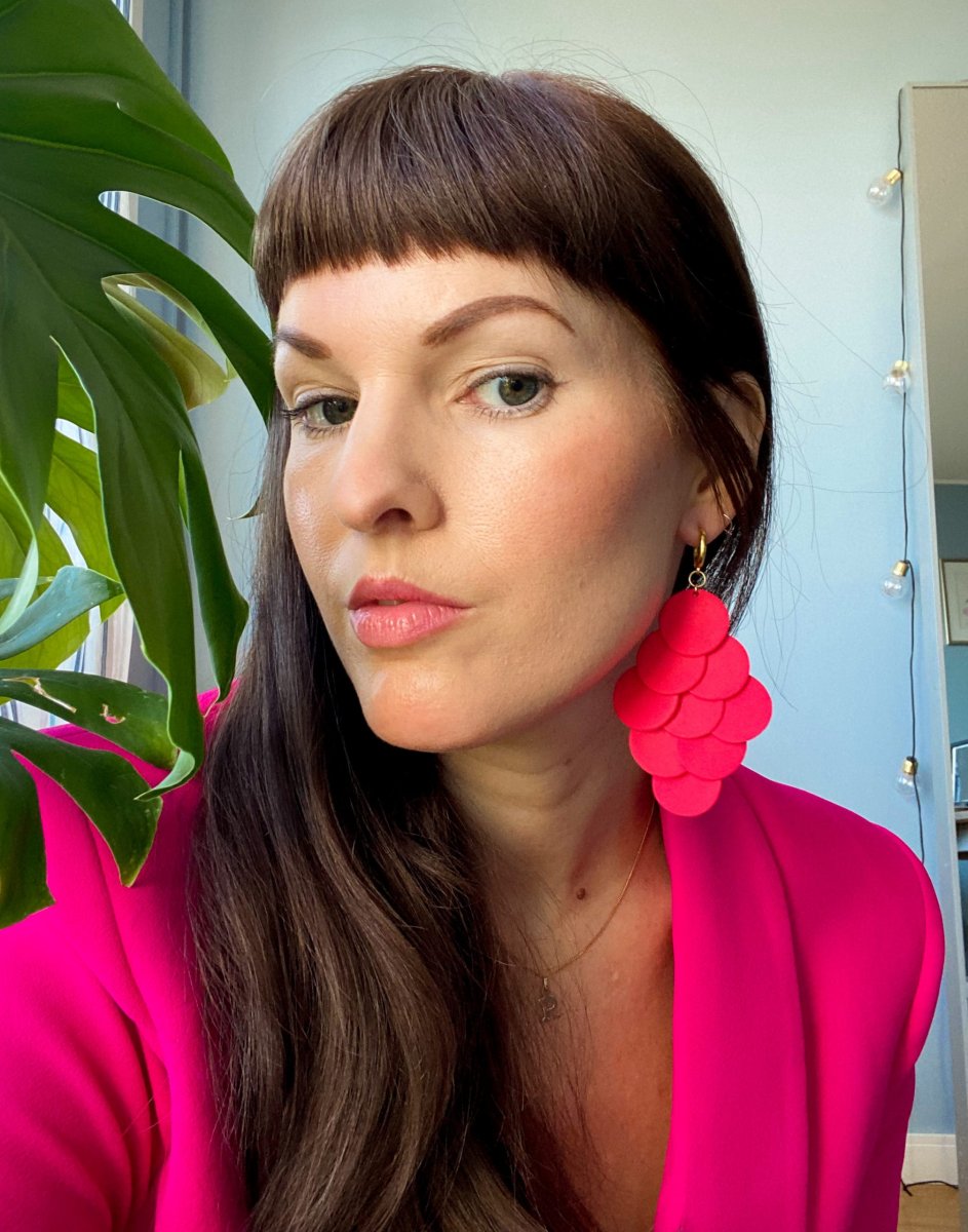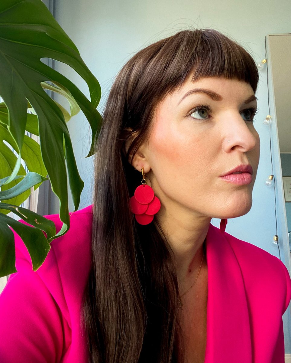 - Material: Polymerlera, sterling silver med äkta 14 k guldplätering på öronkrokarna (nickelfritt).
