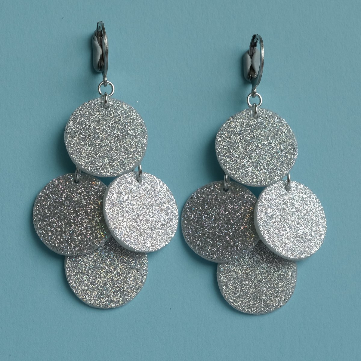 Gnistrande runda paljetter. Otroliga statement-örhängen som passar till allt! Säljes i par.