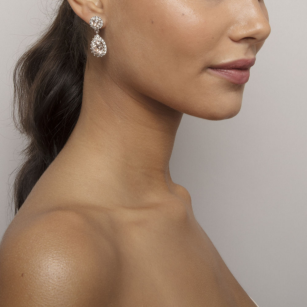 Our number 1 bestselling classic, for good reason! Exquisite design makes this truly versatile and suitable for any style and occasion. Silk offers multifaceted, champagne-rose crystals framed by smaller clear crystals on the large teardrop as well as the round base. An instant favourite.