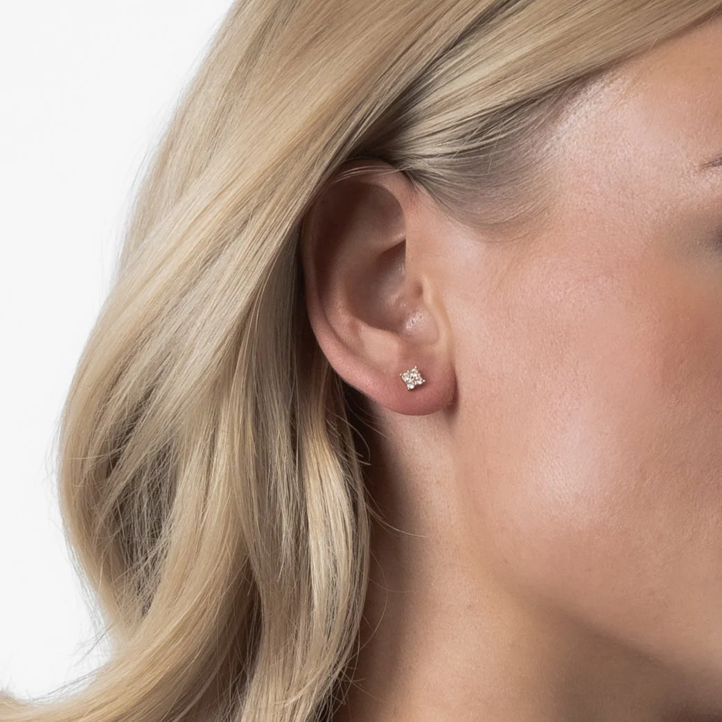 The SQUARE ZIRCONIA STUDS are a pair of minimalistic and stylish studs decorated with four small zirconia stones to create an elegant shimmer. Its minimalistic and glamorous design makes them just as right for everyday life as for more festive events. Advantageously, the studs are so light and comfortable that you forget you’re wearing them. The studs are also perfect to combine with each other, other smaller studs or minimalist jewellery in the same style for a complete look. Available in 925 sterling silver or in 18k gold plating.