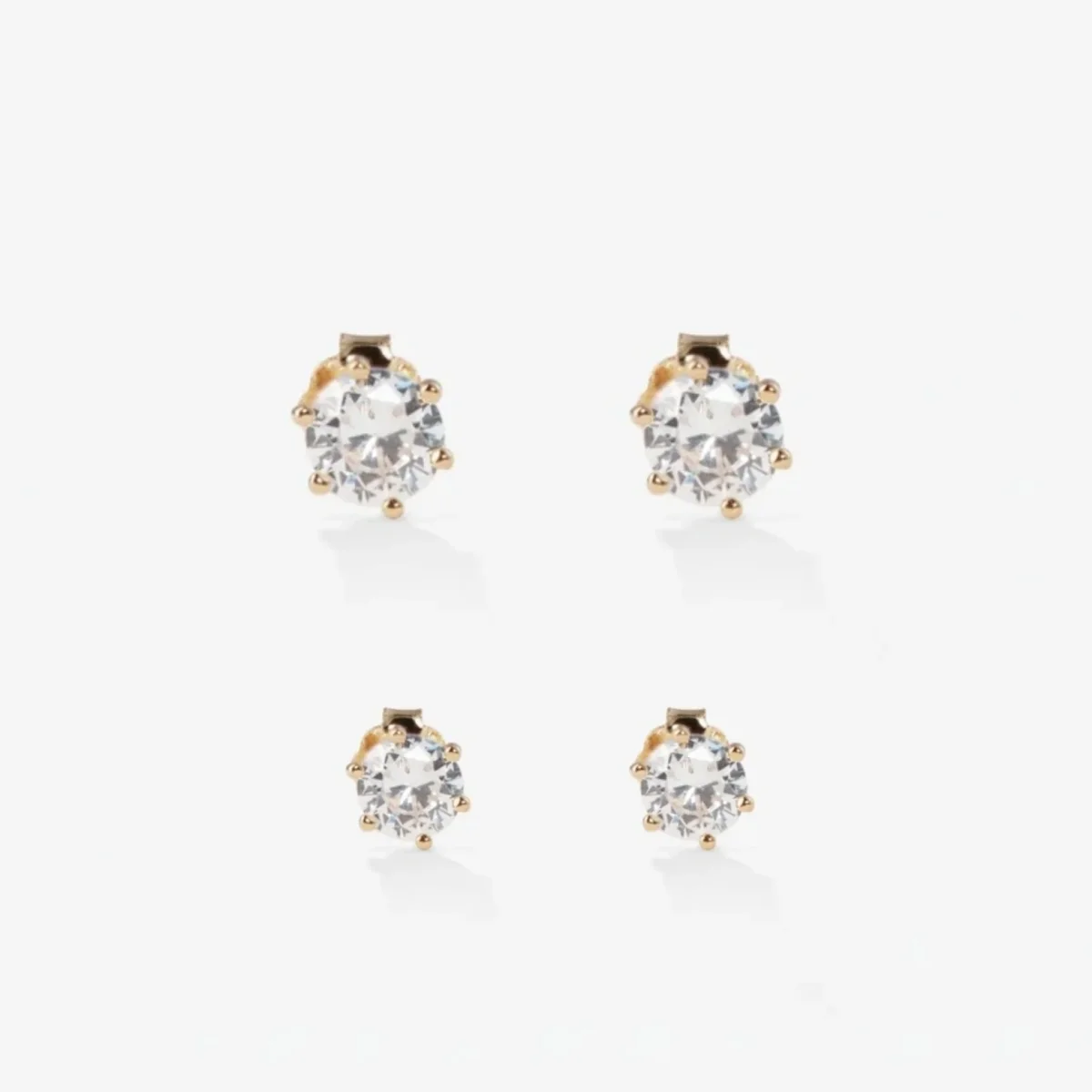 STUD EARRINGS SET – a 2-in-1 earring set featuring two sizes of sparkling zirconia stones. Switch between the different sizes or create a classic ear stack. The timeless minimalist design makes these earrings a versatile addition to your jewelry collection. Delivered in our signature BYBORN jewelry box.