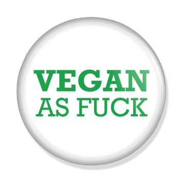 Texten ”Vegan as fuck” finns även på svenska, ”Vegan som fan”.