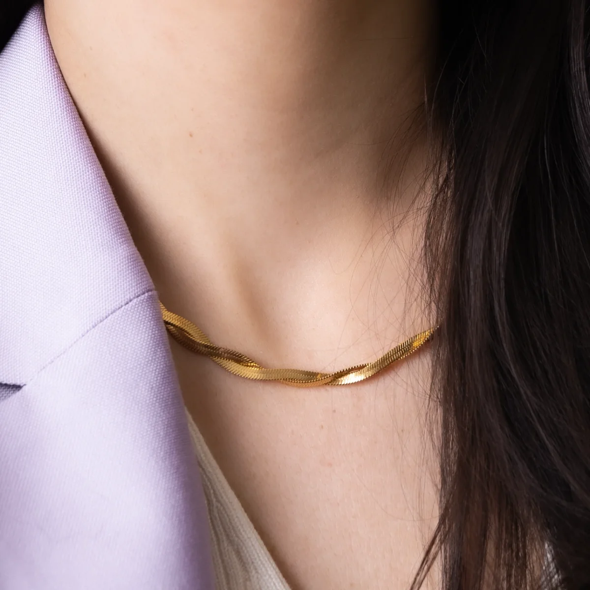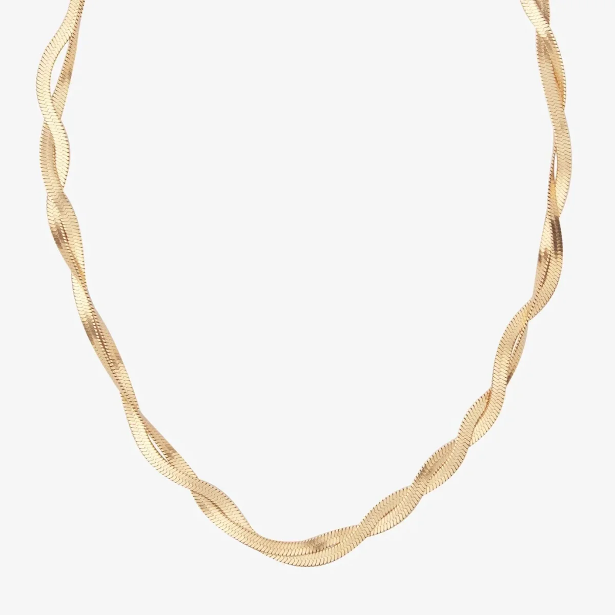 THE WOVEN SNAKE NECKLACE is the perfect addition to your jewelry collection. The chain is simple and elegant, and falls incredibly well around the neck. To complete the look, add our WOVEN SNAKE BRACELET. The jewelry is delivered in a luxurious BYBORN box.